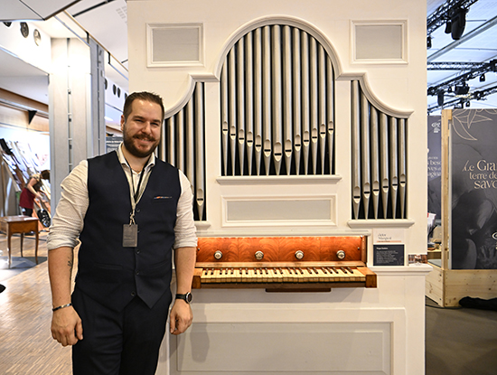 Dans le Grand Est, le facteur d’orgues Victor Mangeol est également ébéniste, et tuyautier en orgue. Il maîtrise les trois métiers nécessaires à la restauration d’un orgue.