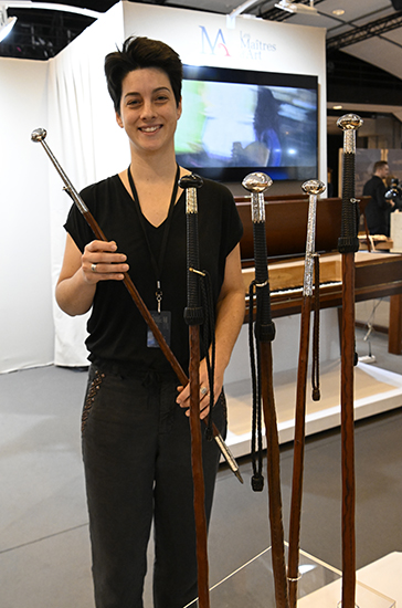 Tradition familiale, sur le stand des maître d’art, avec Liza Bergara qui est la 7e génération d’Ainciart Bergara, dans le village de Larressore, fabricante de Makhila, bâton traditionnel basque de marche. Ferré en bois de néflier, le bâton possède une pointe dans son manche et une dragonne. Son pommeau s’est élargi, sa pointe au sol est en fonte. En 2014, elle a commencé par une formation de gravure ornementale à l’école Boule. En 2019, elle a succédé à sa mère et dirige l’atelier dont le savoir-faire est inscrit à l’inventaire des métiers d’Art rares de l’Unesco. L’Entreprise a le label Entreprise du Patrimoine Vivant (EPV).