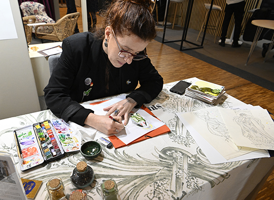 Nous avons également rencontré Marthe Rougieux qui faisait des démonstrations d’enluminure.