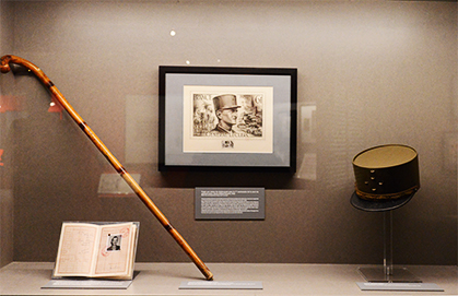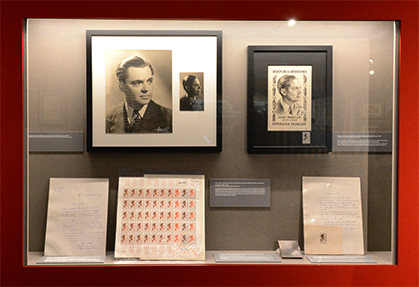 Vitrine consacrée à Philippe Leclerc de Hauteclocque décédé en novembre 1847 dans un accident d’avion. Un premier timbre sera émis en novembre 1848.