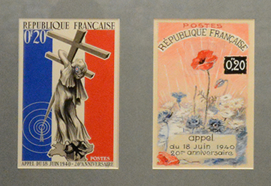 Dès 1940 sollicité par le Général de Gaulle, le graveur Edmond Dulac créera des timbres pour les colonies ralliées à la France Libre, notamment pour la poste aérienne.