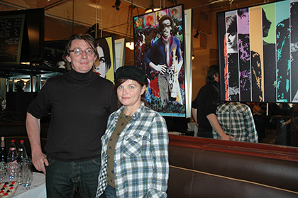 La chanteuse Diane Tell avec l’imprimeur de Digital Graffic, au Sélect, à Montparnasse en 2010, pour son exposition photographique : Colorblind.