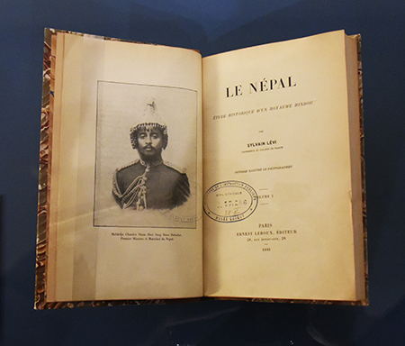 En 1955, l’Institut de France déposait le fonds de son correspondant britannique Brian Houghton Hodgson (1800-1894). De 1820 à 1843, il a résidé au Népal. Il avait remis 147 volumes à la Société Asiatique de Paris. Sylvain Lévi (1863-1935), spécialiste du bouddhisme, membre de la Société Asiatique au sein de l’Académie des Inscriptions et Belles-Lettres (Institut de France) a étudié le sanskrit et exploré l’ensemble de l’Asie. Il a écrit un ouvrage magistral : « Le Népal. Etudes historique du royaume hindou », publié en 3 volumes (2+1 volume d’illustrations, 1905) présentés dans l’exposition.