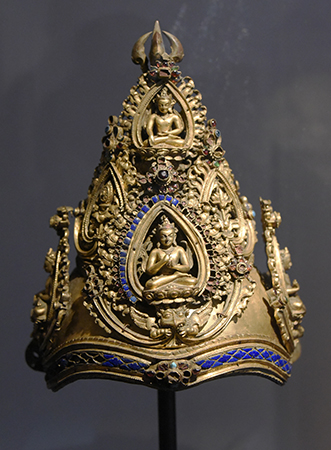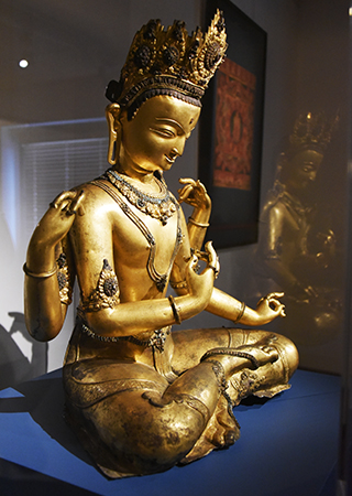 Du Xe au XIXe siècle, 90 œuvres sont présentées, sorties de la collection népalaise du musée Guimet (MNAAG) et de collections publiques françaises. Des pièces ont été prêtées par le Collège de France, les musées d’arts asiatiques de Nice, de Toulouse et le musée du quai Branly.