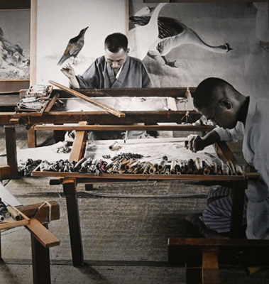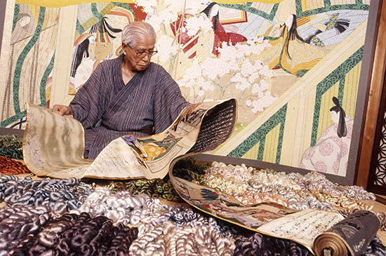 Trente-cinq ans auront été nécessaires au maître tisserand de Nishijin, pour la réalisation de ces rouleaux entreprise à l’âge de 70 ans jusqu’à son décès à 105 ans.