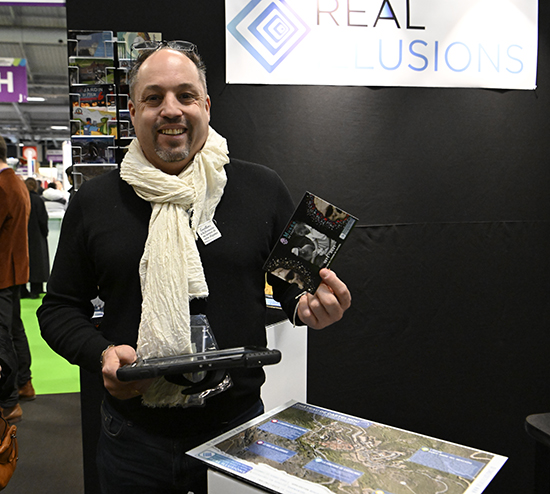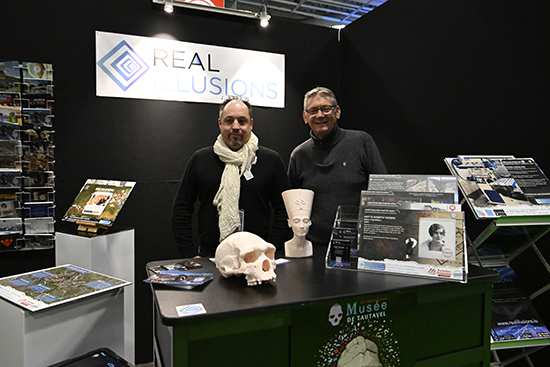 Nous sommes attirés sur le stand de Real Illusions par deux solides reproductions réalisées sur des imprimantes 3D un Crâne de Tautavel et un buste de Néfertiti. Elles nous plongent chacune dans leur univers. Les cartes postales servent, ici aussi, de porte d’entrée vers une réalité augmentée. TF1 Info a conduit une expérience en direct accueillant un mammouth dans sa salle d’actualités. Une tablette et un smartphone manipulé avec maestria par Le fondateur de cette dynamique société Philippe Font donne la parole a des personnalités décédées puis nous emmène de Collioure (66) au château de Castelnou (66) où de nouvelles immersions sont en préparation pour avril.