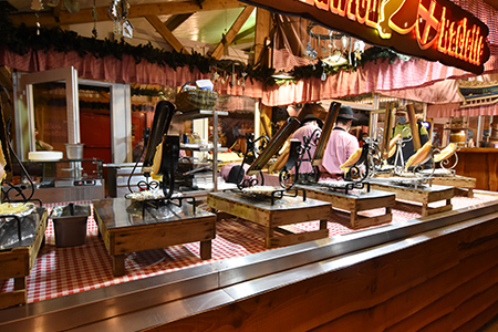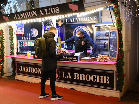 Vin ou chocolat chaud, gaufres, crêpes, marrons grillés, gourmandises sucrées ou salées. Son marché de Noël réunit cadeaux et produits régionaux.