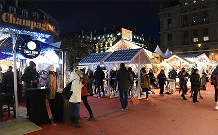 Hôtel de Ville, un village de Noël sur le parvis avec un mini marché de Noël; manèges gratuits, de décembre 2021 à janvier 2022.