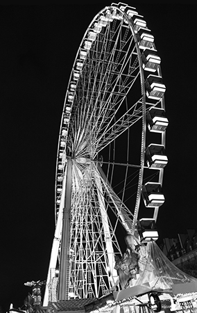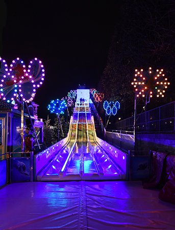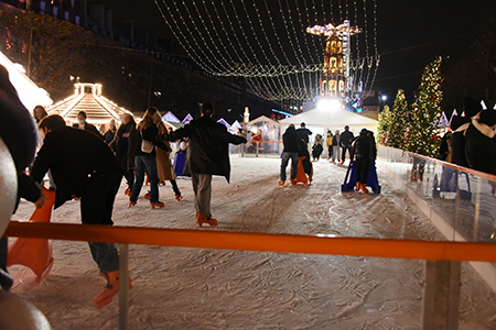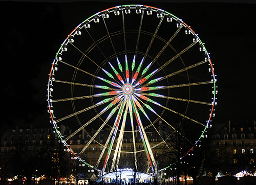 La Grande Roue illuminée de 50 mètres offre une vue magnifique de Paris et une patinoire de 1200m2 attend les sportifs.