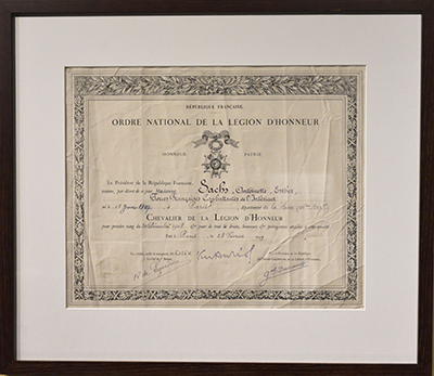 Diplôme de Chevalier de la Légion d’Honneur, 1949