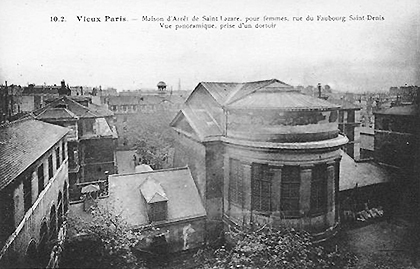 Si vous cherchez où était la prison Saint-Lazare n’allez pas du côté de la gare du même nom mais gagnez le haut du faubourg Saint-Denis, vers la gare de l’Est, presque à l’angle du boulevard Magenta, avant la rue de Chabrol, dans le 10e arrondissement de Paris.