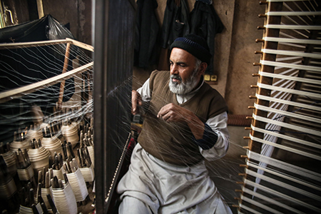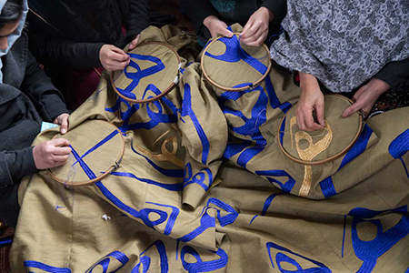 En dépit de la situation actuelle, la maison de couture continue de produire à Kaboul et avec les tisserands de Hérat et de Mazar-e-Sharif.