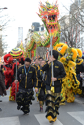 A Paris, le Nouvel An Chinois ou Nouvel An Lunaire est, depuis 1986, l’occasion de belles festivités. De grands défilés sont proposés aux Parisiens, à La République, à Belleville et dans le 13e arrondissement. Celui du 13e arrondissement, le dimanche 22 février à 13 heures, réunissait plus de 2000 personnes avec en tête du cortège quelques politiques dont Manuel Valls, Bernard Cazeneuve et Anne Hidalgo.