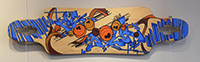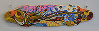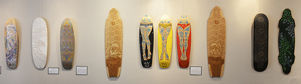 Les planches qui habillent les murs de la galerie sont davantage faites pour s’intégrer dans une décoration intérieure branchée, voire vintage. Ces boards, ces planches créatives de skate n’ont pas encore chaussé leurs roues et ne les chausseront sans doute jamais.