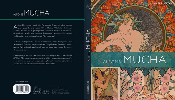 Alfons Mucha, par Valérie Mettais, 128 pages reliées sous jaquette, au format 19×23,5 cm (éditions Larousse, 21 rue du Montparnasse, Paris 6e)