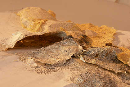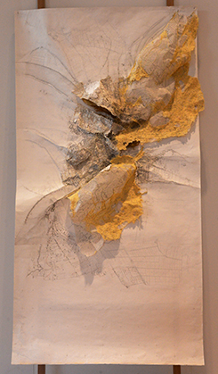 Elle ponce, elle troue, elle pique, elle soulève les espaces, les tisse. La tectonique des plaques devient dessin physique. Son travail met en évidence l’apparente fragilité du papier, sa résistance.