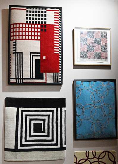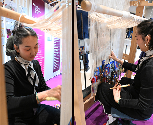 Céline Durand formée à l’École des Arts textiles du Mobilier national pratique la haute lice à la manufacture des Gobelins. Elle nous présentait un travail libre.