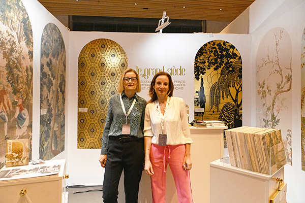 A proximité, Le Grand Siècle est présent pour la première fois et propose, grâce aux technologies numériques, l’édition de papiers peints panoramiques en réédition pour une réimpression sur des supports nobles, mettant en œuvre, notamment, métaux et feuille d’or.