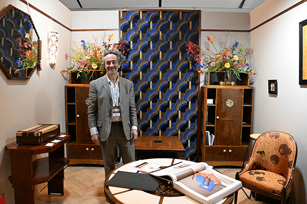 Il propose un décor Art déco ; avec Rose Saneuil et ses petits tableaux Art et Matière en marqueterie. La scénographie florale est de Laure Cotelle d’Arts et Flore. Les éclairages Cristal de Franck Benito complètent la mise en scène de son stand.