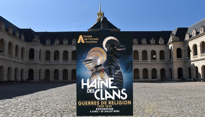 –Musée des Armées : La haine des clans. Guerres de religion 1559-1610, du 5 avril au 30 juillet 2023 ; prix musée et expositions : 15 euros, tous les jours de 10h à 18h, nocturne premier vendredi du mois jusqu’à 22h.