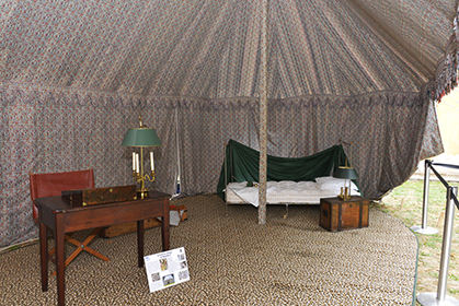 Cette exposition souligne la qualité du travail de restauration accompli sur des pièces exceptionnelles réalisées à l’origine par les artisans du XIXe siècle : les orfèvres Thomire et Cie et Martin-Guillaume Biennais, le serrurier Marie Jean Dessouches, l’ébéniste François-Honoré-Georges Jacob-Desmalter. Les tapissiers Poussin Aîné puis Poussin et Lejeune ont confectionné les toiles de tentes qui à leur retour de campagne étaient restaurées par la Dame Le Chevallier.
