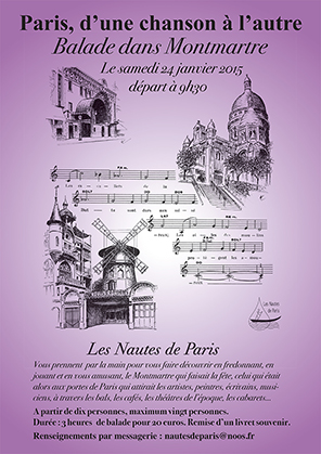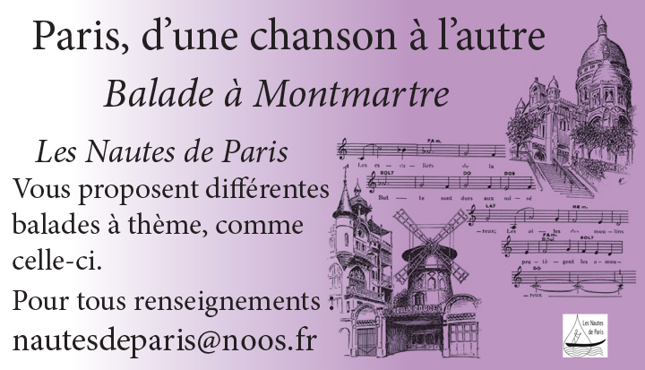 Les Nautes de Paris, vont vous prendre par la main pour vous faire découvrir en fredonnant, en jouant, en vous amusant, le Montmartre qui faisait la fête, celui qui était alors aux portes de Paris qui attirait les artistes, peintres, écrivains ; musiciens, à travers, les bals, les cafés, les théâtres de l’époque, les cabarets…