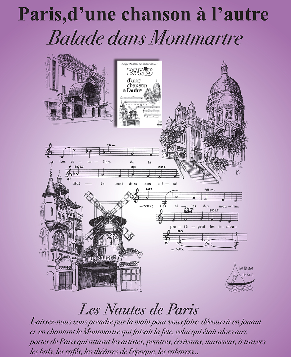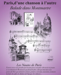 Une promenade à faire seul ou à plusieurs, sur le thème du Montmartre qui a aimé et qui aime toujours, les spectacles, les chansons et le cinéma guidé par des chansons.