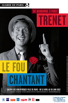 Jusqu’à fin juin, la galerie des Bibliothèques de la Ville de Paris (22 rue Malher, Paris 4e), présente « Charles Trenet, le fou chantant, de Narbonne à Paris ». Pour fêter les cent ans de la naissance du poète-auteur-compositeur-interprète. Le parcours est illustré de plus de 400 documents d’époque (de nombreuses photos), de 150 chansons à écouter ainsi que des audiovisuels. L’exposition partira, ensuite, à Narbonne où elle sera présentée du 20 juillet au 20 octobre 2013.