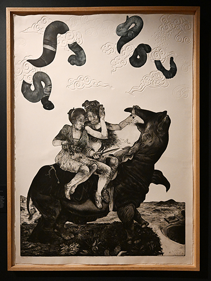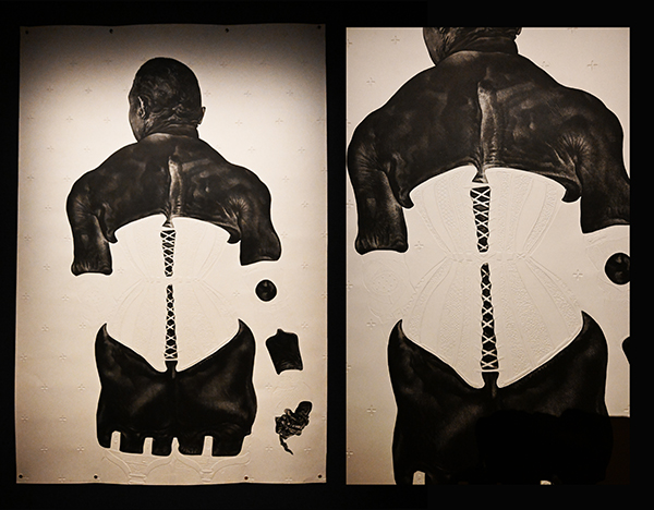Prendre le temps de détailler et retrouver chaque trait, chaque technique du dessin, de l’estampe… Dans cette salle retrouvez le visuel de l’affiche de l’exposition, la Robe : Dress, élément du tryptique Trinity Fetish ; eau-forte, aquatinte, manière noire et gaufrage.