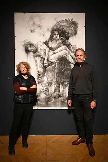 Diane Victor la lauréate et Erik Desmazières membre de la section gravure et dessin de l’Académie des beaux-arts, et du Jury de l’édition 2025. Il nous a présenté le contexte dans lequel s’exprime cette novatrice en matière d’estampe contemporaine.