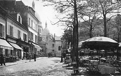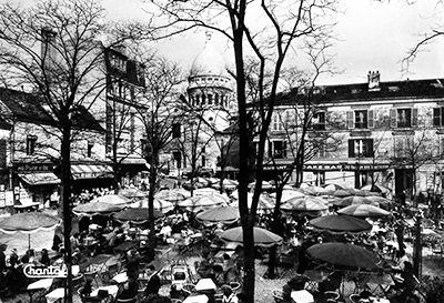 A Montmartre, la place du Tertre est un des endroits mythiques de la Butte. Elle était, elle aussi un de nos terrains de jeux. Après avoir fait des courses de rapidité avec le funiculaire et nous être baignés dans la fontaine du Sacré-Cœur nous venions là pour côtoyer les peintres.