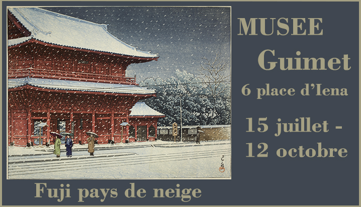Le 15 juillet 2020, pour sa réouverture après les mois de confinement, le musée Guimet a choisi de présenter de rares estampes japonaises sur le thème : « Fuji, pays de neige » ; Soixante dix œuvres sorties des réserves et présentées dans les salles du rez-de-jardin pour être en adéquation avec les consignes sanitaires qui réclament de respecter la distanciation physique.