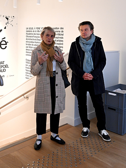 Accueillis par l’académicien Jean-Michel Othoniel et la correspondante de la section de sculpture de l’Académie des beaux-arts Françoise Docquiert, huit résidents, ont préparé durant huit mois, à la villa Dufraine, propriété de l’Académie des beaux-arts le projet commun, restitué ici, sous le titre : « Un soleil à peine voilé ».