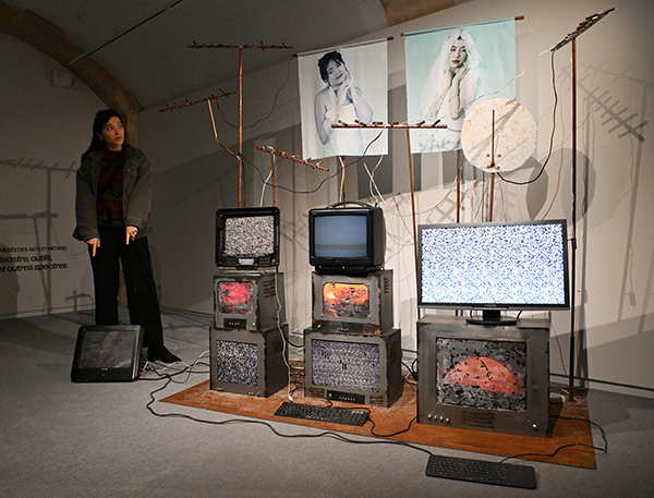 Lien Hoang-Xuan met en évidence la catastrophe électronique avec un enchevêtrement d’antennes et des écrans figés neigeux qui seraient installés sur une plage. Le rayonnement et la surface de la mer éclairée par le soleil donneraient sur le sable la même image que celle qu’offre les écrans.