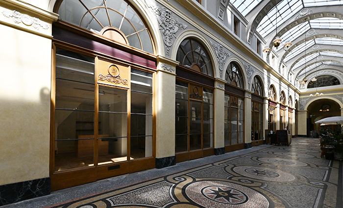 Construite entre 1823 et 1826, sur 176 mètres, par Louis Auguste Marchoux au 4 rue des Petits-Champs, à deux pas du Palais Royal et de la Bibliothèque nationale, non loin de la Bourse. Elle a trois accès, rue Vivienne, rue des Petit-Champs et rue de la Banque, dans le IIe arrondissement de Paris.