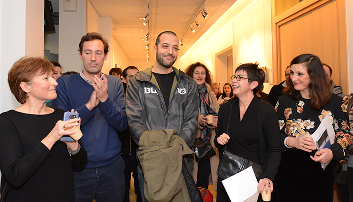 Ci-dessus à la Une, la commission exposition et direction artistique de l’ANI Marie Kartsenty, Emmanuel Zbinden, le lauréat Italien Gianmarco Panucci, Laetitia Guillemin, Stefana Fraboulet.