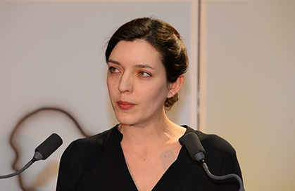 Au micro Alain Seban, président du centre Pompidou entouré de l’équipe du festival, Charlène Dinhut, Géraldine Gomes, Kathryn Weir, Sylvie Pras et Bernard Blystène.
