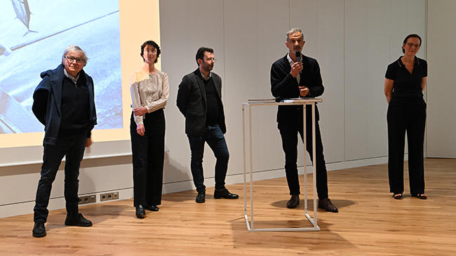 Avec les membres du commissariat scientifique Marion Veyssière et Matthieu Rivallin suivons Jean Gaumy qui commente ses images.