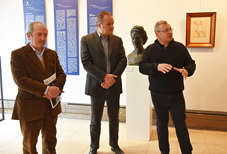 De gauche à droite, devant Yvette de Jean Osouf, le sculpteur Mauro Corda membre du comité des sculpteurs de la Fondation, le peintre Jean-François Larrieu président de la Fondation, Christophe Richard conservateur du Musée Despiau-Wlérick de Mont-de-Marsan.