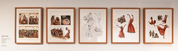 Ainsi donc l’exposition nous conduit d’une section à l’autre, photographie, danse, sculpture, musique, architecture, cinéma et audiovisuel. Côté technique, peinture, gravure et dessin sont étroitement liés.
