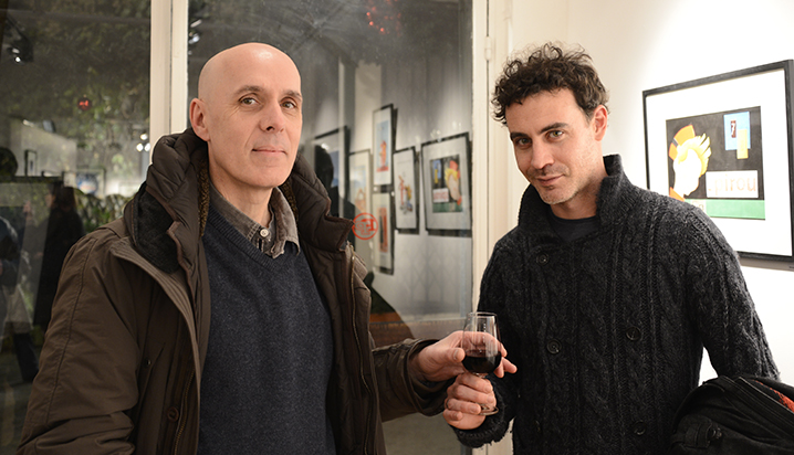 Ci-dessus, Muzo et Jean-Claude Salemi qui ont apporté leur contribution aux hommages d’artistes à Spirou qui sont présentés, actuellement, à la galerie Petits papiers, rue Saint-Honoré, à Paris.