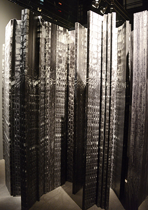 « J’aime l’architecture, la construction et son interaction avec la lumière, comme ici au Centquatre sous la voute de cette superbe Halle… Mais, cette architecture là devient une interprétation et une perception mentales ce que je traduis ici. » Il s’interroge sur ce que notre cerveau, notre œil perçoivent et retiennent ; ce que le viseur photographique capte et nous propose. Il réalise des transcriptions, en différentes dimensions, sur des supports variés : papier, métal… qu’ils perforent, griffent, plient… Ses images évoluent, du conscient vers l’inconscient et chacun se les appropriera, leur offrant une autre dimension toute personnelle.