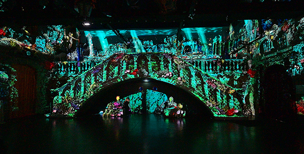 Mapping et spectacle d’Opéra avec des personnages sortis de la Commedia dell’ Arte.