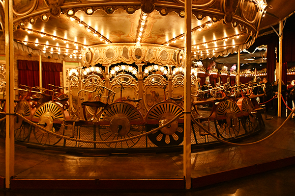 Au Musée des arts forains vous attendent des jeux, notamment le manège de vélocipèdes, la course des garçons de café…