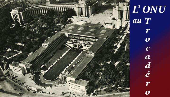 En 1948, la France propose d’accueillir la 3e session de l’ONU, Organisation des Nations Unies. Le Palais de Chaillot, les jardins et la place du Trocadéro vont passer sous la juridiction de l’ONU avec remise des clés au secrétaire général. De septembre à décembre 1948 seront ainsi accueillis les représentants de 58 nations. Des préfabriqués sont construits par Jean Carlu pour accueillir des bureaux et le restaurant du personnel.