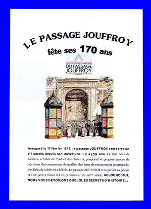 Février 2017. Le passage Jouffroy, construit entre 1845 et 1846, a été autorisé par ordonnance de Police et inauguré officiellement le 17 février 1847.