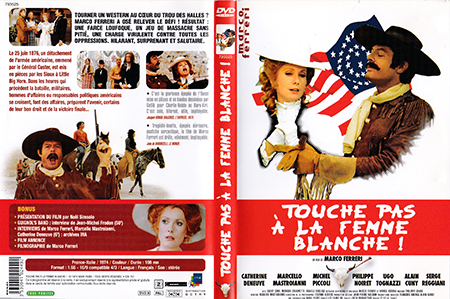 En 1976, après de succès de la Grande Bouffe, sortait Touche pas à la Femme blanche. Marco Ferreri a fait appel à sa bande d’acteurs favoris, Marcello Mastroianni, Michel Piccoli, Philippe Noiret, Ugo Tognazzi mais aussi Darry Cowl, Alain Cuny, Serge Reggiani et Catherine Deneuve pour les inviter à jouer non plus comme des enfants mais comme des adultes aux Cowboys et aux Indiens. Ainsi, on peut voir le général Custer chevauchant entre les voitures.