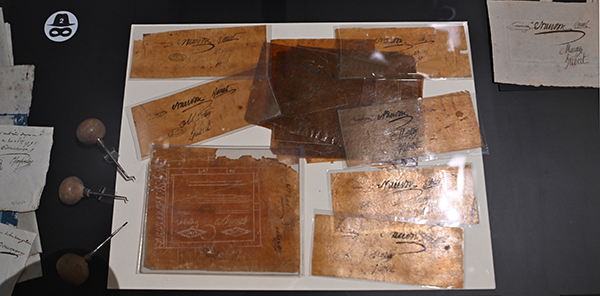 Pendant la Révolution, panoplie de faussaire pour la réalisation de faux bons de caisse patriotique, faux billets, assignats vers 1790-1792