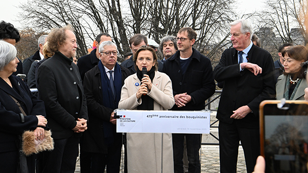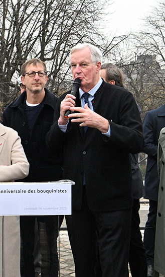 Michel Barnier, ancien premier ministre. Il s’est dit « Heureux de fêter un trésor vivant de notre ville, les Bouquinistes ! »