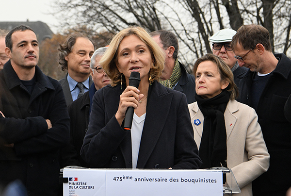 Valérie Pécresse présidente du Conseil régional d’Île de France a salué l’action des bouquinistes, leur label et évoqué sa découverte enfant des merveilles contenues dans leurs boîtes.